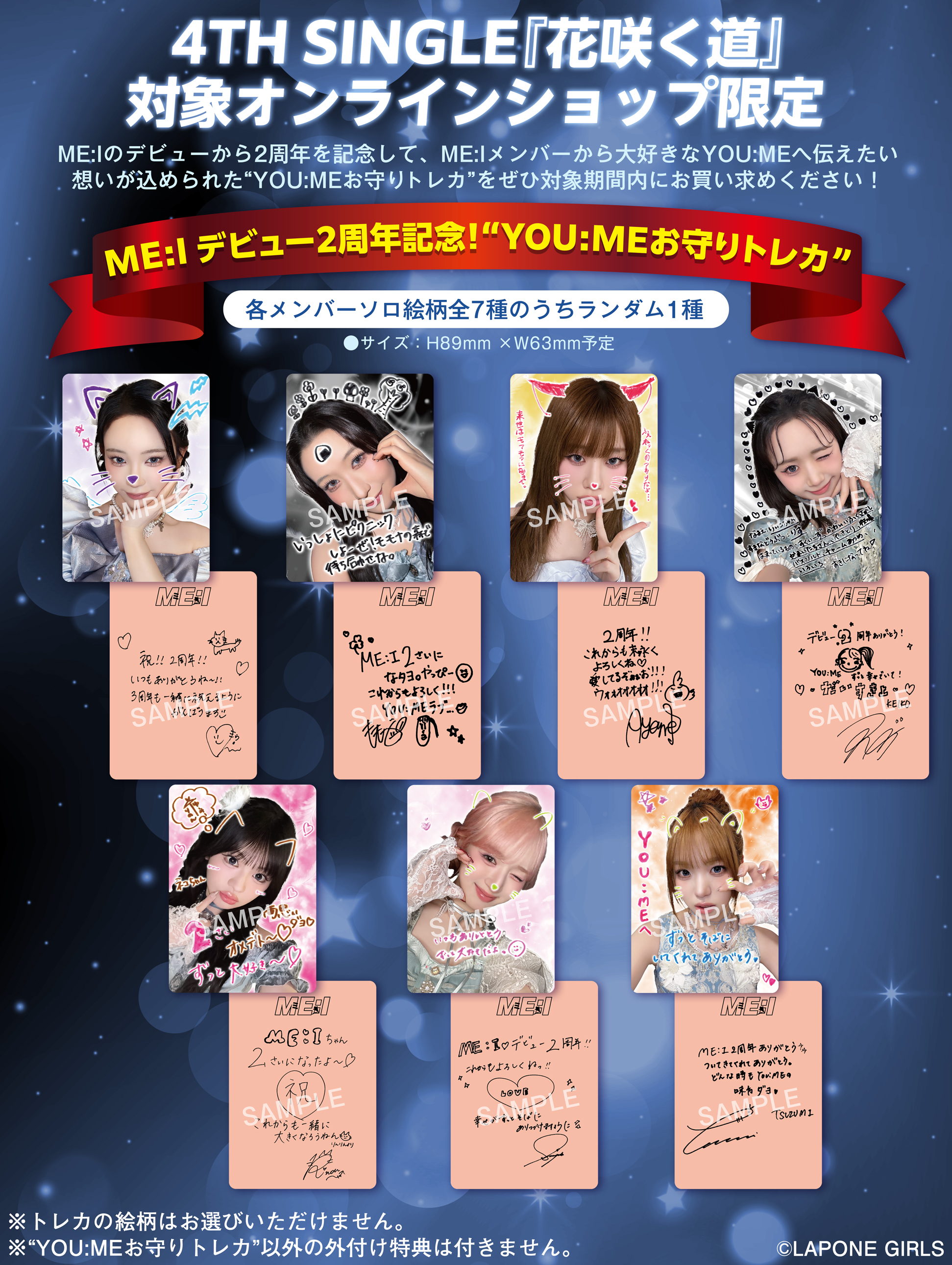 4TH SINGLE『花咲く道』対象オンラインショップ限定ME:I ”デビュー2周年記念!YOU:MEお守りトレカ” プレゼントキャンペーン開催決定!